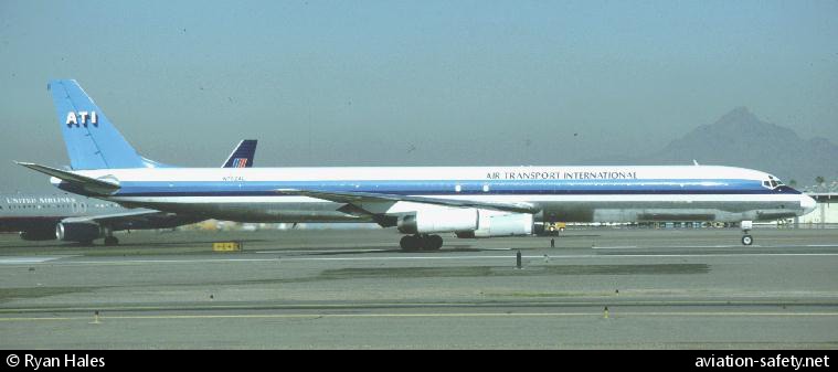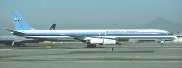 The aircraft pictured is just one of many DC-8s purchased and managed by Aerolease International throughout the 80's and 90's in both passenger and freighter configuration. At the time, this cargo aircraft was on lease to Air Transport International, a predecessor to Air Transport Services Group (ATSG), of which Aerolease was an investor.